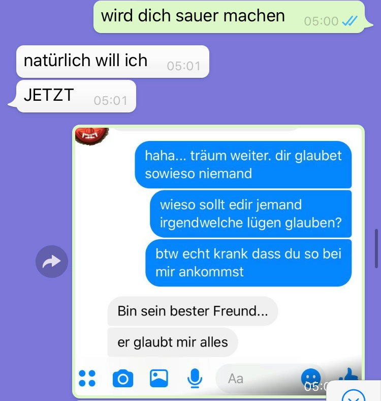 Selbst mit der Nachricht kaum zu verstehen Von donscap Veröffentlicht 05/27/2022, 4:55 PMSelbst mit der Nachricht kaum zu verstehenWie soll man das nur jemandem erklären? Sowas kann man doch keinen Freund nennen! Ich hätte definitiv anders reagiert, ich hoffe ihr auch.WhatsAppE-MailLink