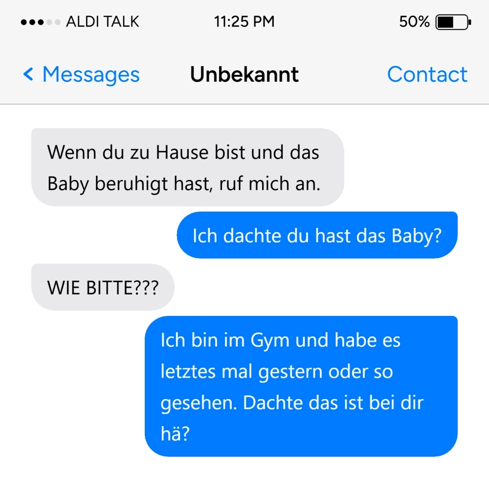 Wenn dir eine unbekannte Nummer schreibt Von donscap Veröffentlicht 12/12/2024, 5:52 PMWenn dir eine unbekannte Nummer schreibtWas sollte man da antworten? Man könnte ein kleines Spiel daraus machen. Nicht besonders nett, aber immerhin unterhaltsam!WhatsAppE-MailLink
