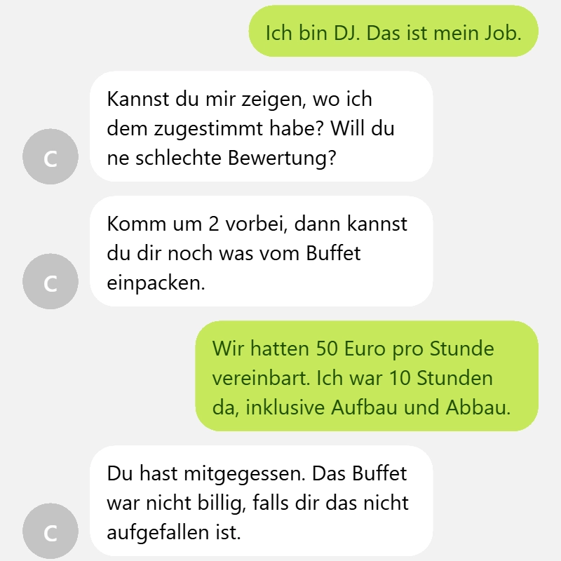Eine Hochzeit ist teuer, das ist uns allen bewusst, doch da wollte wohl jemand an der falschen Stelle sparen. Sie haben sogar beobachtet wie oft er am Buffet war und wollten ihm deshalb weniger geben ðŸ˜