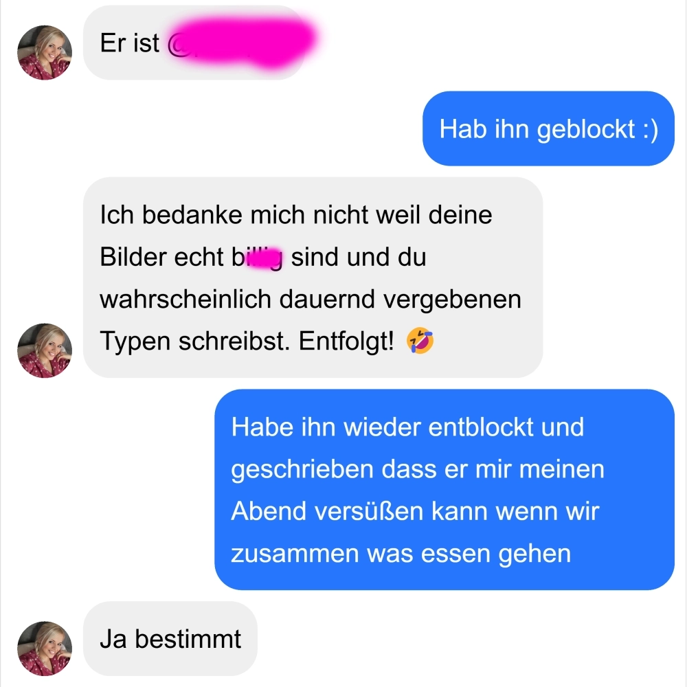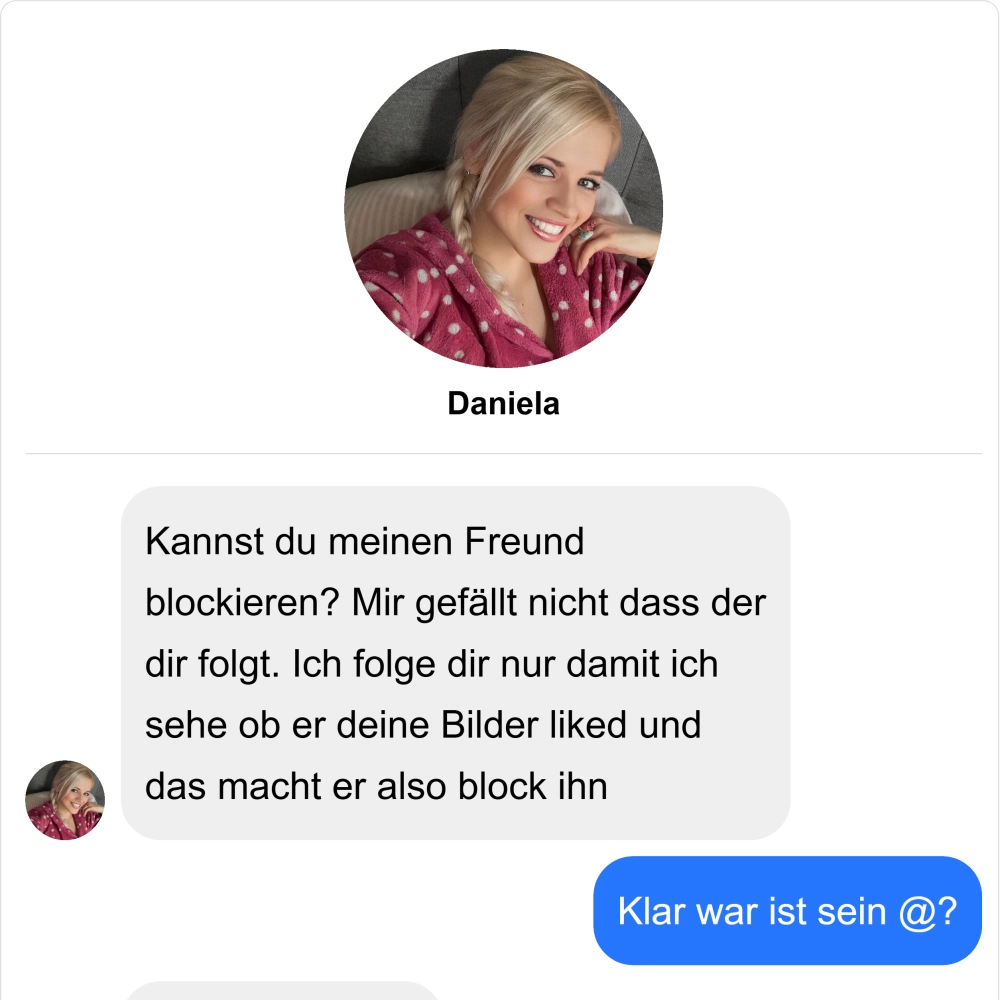 Sie soll ihren Freund blockieren und mach dann das 😂