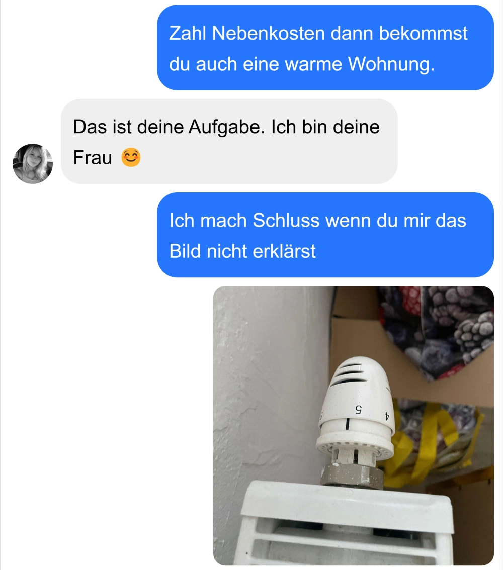 Ein unterhaltsamer Austausch über Heizung, Finanzen und Rollenverteilung nimmt unerwartete Wendungen: "Fenster auf, Heizung auf 5 – das Chaos ist perfekt!" Wenn Alltagssorgen und trockener Humor aufeinandertreffen, bleibt es spannend. Wer liegt hier eurer Meinung nach vorne? 👀🔥