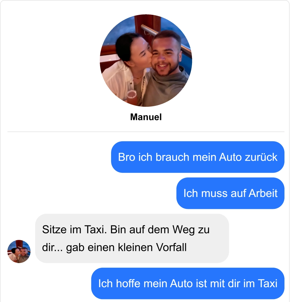 Er wird sich das Auto nie wieder ausleihen dürfen Von donscap Veröffentlicht 01/15/2025, 4:29 PM Aktualisiert 01/19/2025, 1:20 PMEr wird sich das Auto nie wieder ausleihen dürfenSollte man Freunden sein Auto leihen? Nach dieser Aktion wirst du da nächstes mal noch mal drüber nachdenken 🤣WhatsAppE-MailLink