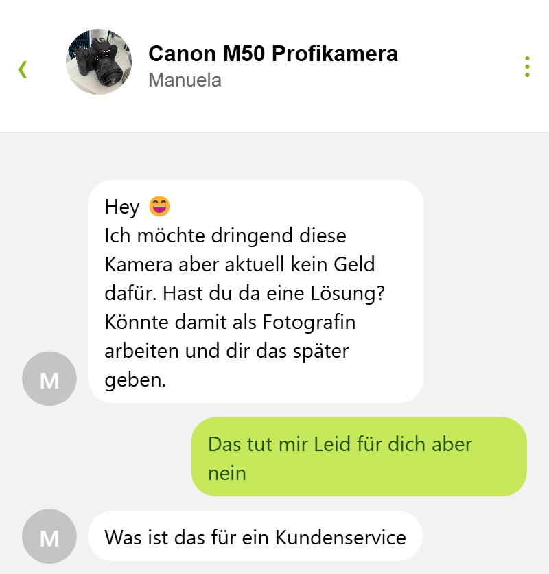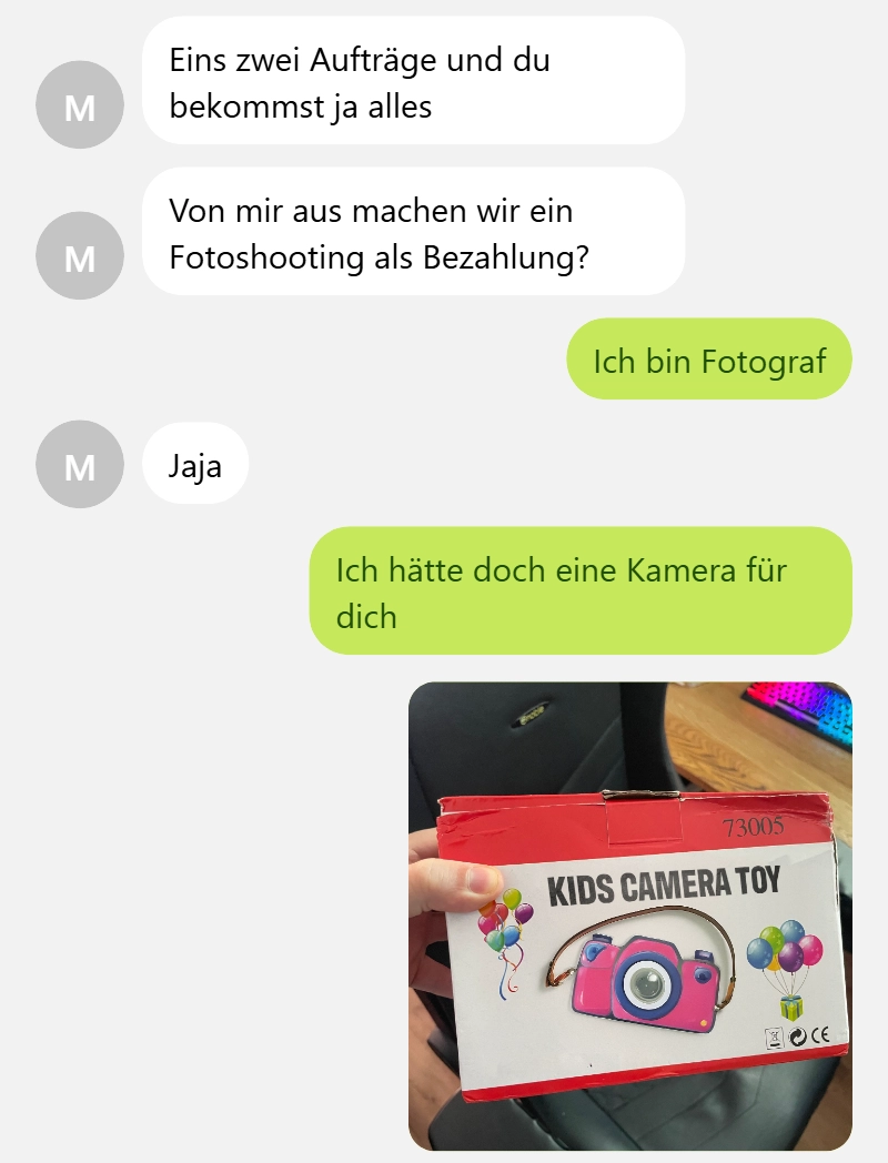 Sie wollte diese Kamera so gerne, aber das lief nicht wie geplant Von donscap Veröffentlicht 02/19/2025, 3:59 PMSie wollte diese Kamera so gerne, aber das lief nicht wie geplantSie dachte einfach sie wird zur Fotografin damit, da lag sie falsch 🤣 naja, hätte ja klappen können.WhatsAppE-MailLink