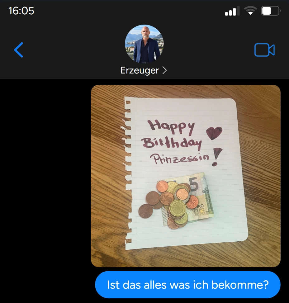 Sie hat da ein wenig mehr von ihrem "Erzeuger" erwartet Von donscap Veröffentlicht 03/10/2025, 5:49 PMSie hat da ein wenig mehr von ihrem "Erzeuger" erwartetAllerdings gibt es schon einen Ersatz. Das passt ihm verständlicherweise noch nicht so ganz. Doch man muss sich damit anfreunden...WhatsAppE-MailLink