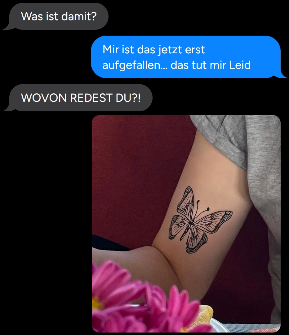 Was bedeutet dieses Tattoo denn für euch? Ist es eine Red-Flag, oder hat er damit übertrieben 😃 Vielleicht hat es ja auch gar keine Bedeutung, woher soll er das wissen 😭