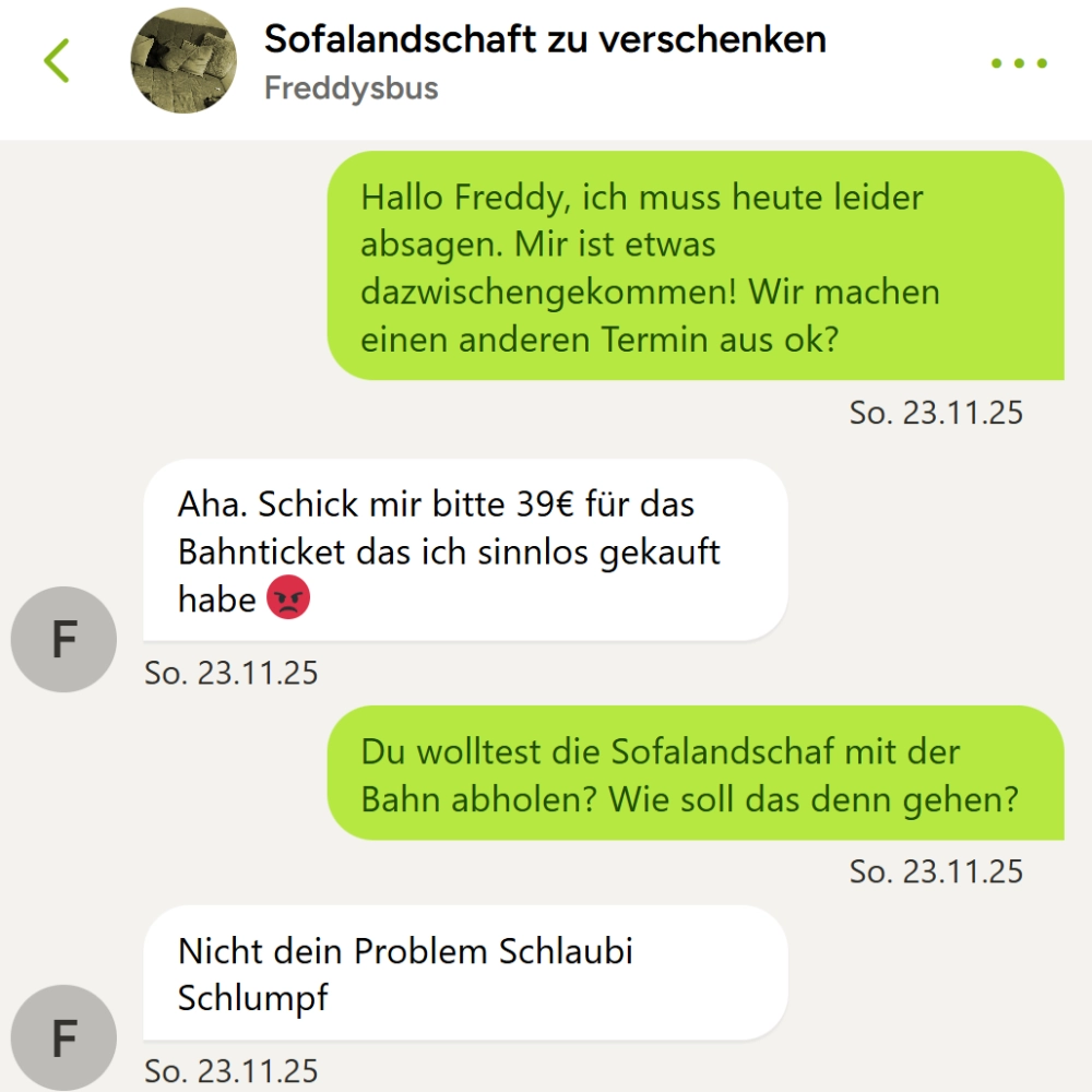 Er hatte einen Plan, der sich letztendlich sogar ausgezahlt hat. Die meisten hätten ihn wohl schon nach den ersten Nachrichten blockiert. Doch Ende gut alles gut, wenn man was bei Kleinanzeigen verkauft 😂