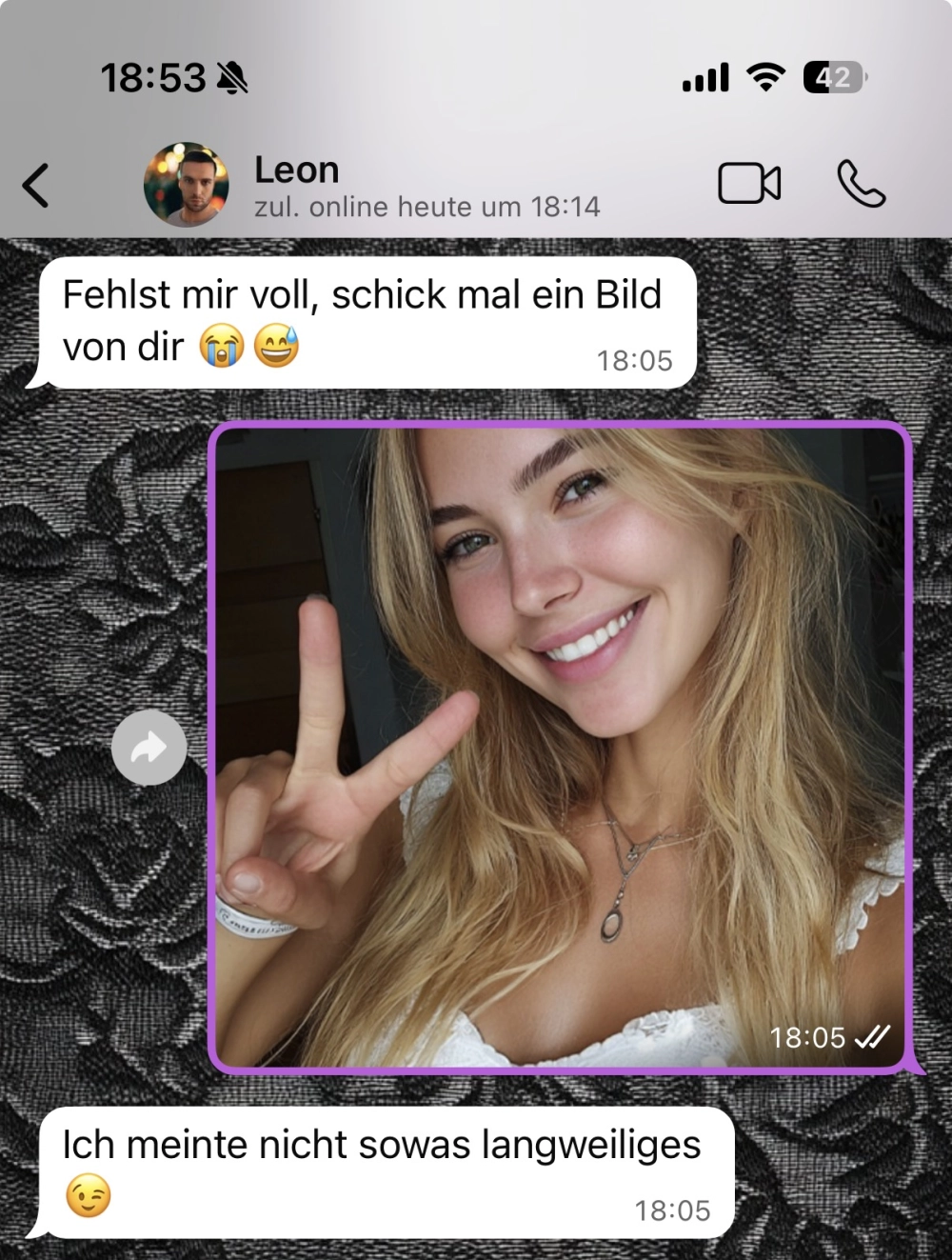 Die 200IQ Antwort auf diese nervige Frage Von donscap Veröffentlicht 11/25/2025, 6:54 PMDa kennt man sich gerade mal 3 Tage und schon kommt sowas. Doch wie beschäftigt man so einen? Die Antwort werde ich mir merken und in meine eigenen Antworten integrieren 🤣WhatsAppE-MailLink