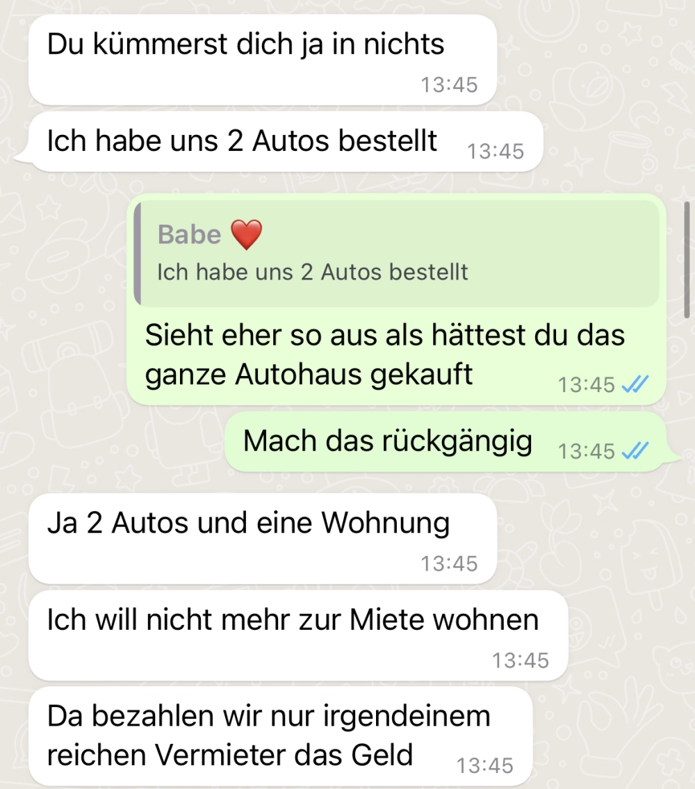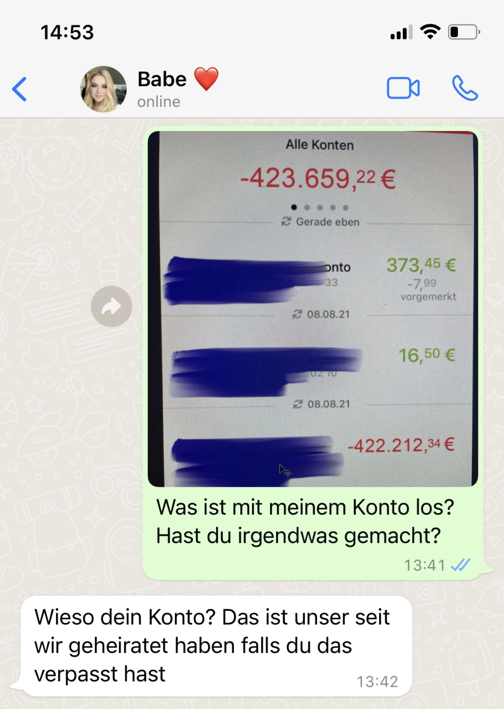 Wenn einer das Geld verdient, und einer das Geld ausgibt ist das natürlich nicht so optimal. Aber besonders große Ausgaben sollte man gemeinsam besprechen. Anders funktioniert es einfach nicht in einer Beziehung, man muss sich blind vertrauen können. Wie seht ihr das in einer Beziehung, habt ihr ein gemeinsames Konto, oder hat jeder seins? Dürft ihr an das Konto des jeweils anderen dran? Hier teilen sich die Meinungen absolut, das macht jeder anders. Teilt eure Erfahrungen mit sowas in den Kommentaren!
