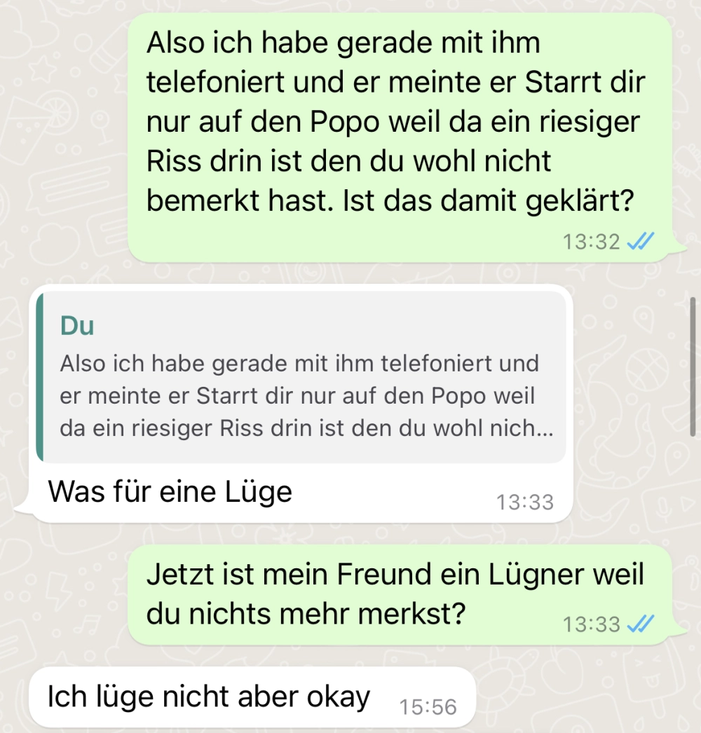 Aber wem sollte man nun glauben? Dem eigenen Partner, oder einer Frau die man nicht kennt. Das ist eine echt verzwickte Situation, doch es wird noch viel viel schlimmer.
