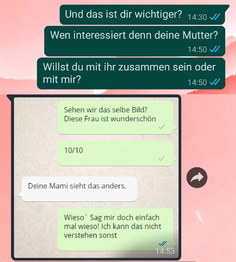 Mama hat etwas dagegen Von donscap Veröffentlicht 30.05.2022, 15:13Mama hat etwas dagegenWas soll man schon machen, wenn die eigene Mutter etwas gegen deine neue Freundin hat Da steht man vor einer schwierigen Entscheidung. Denkt gut darüber nach, was ihr getan hättet!Tags:chatWhatsAppE-MailLink