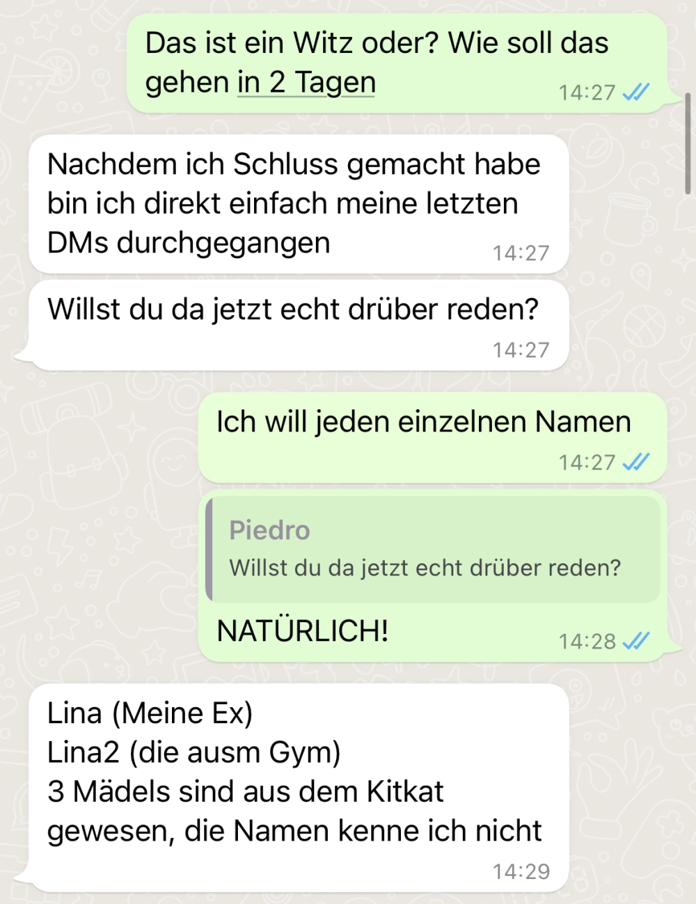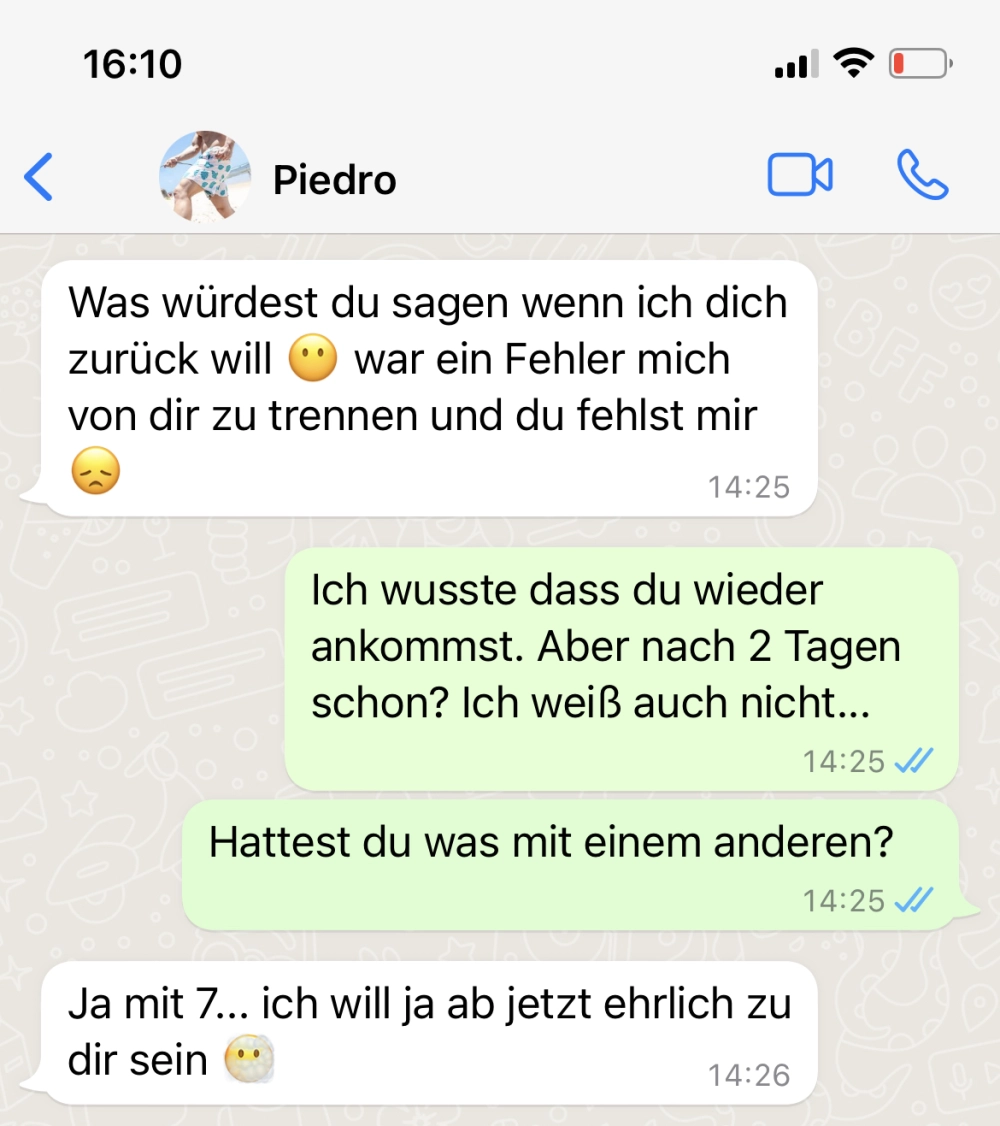 Doch manchmal ist es einfach besser, wenn man getrennte Wege geht. Das zu akzeptieren ist allerdings nicht immer so einfach. Er hätte ihr echt nicht schreiben sollen, denn das artet ganz schön aus 🤣