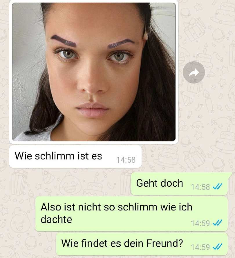 Leute, macht sowas bitte niemals selber. Bei sowas geht man zum Profi, oder lässt es ganz. Im Gesicht sollte man keine Experimente starten! Ihr seht ja, was im Worst-Case passieren kann... das hier: