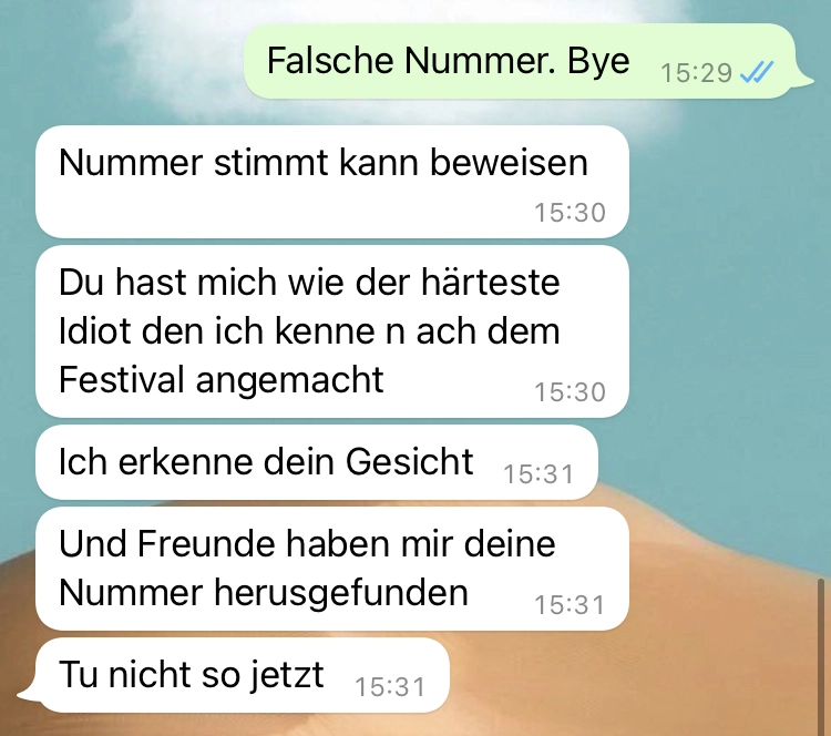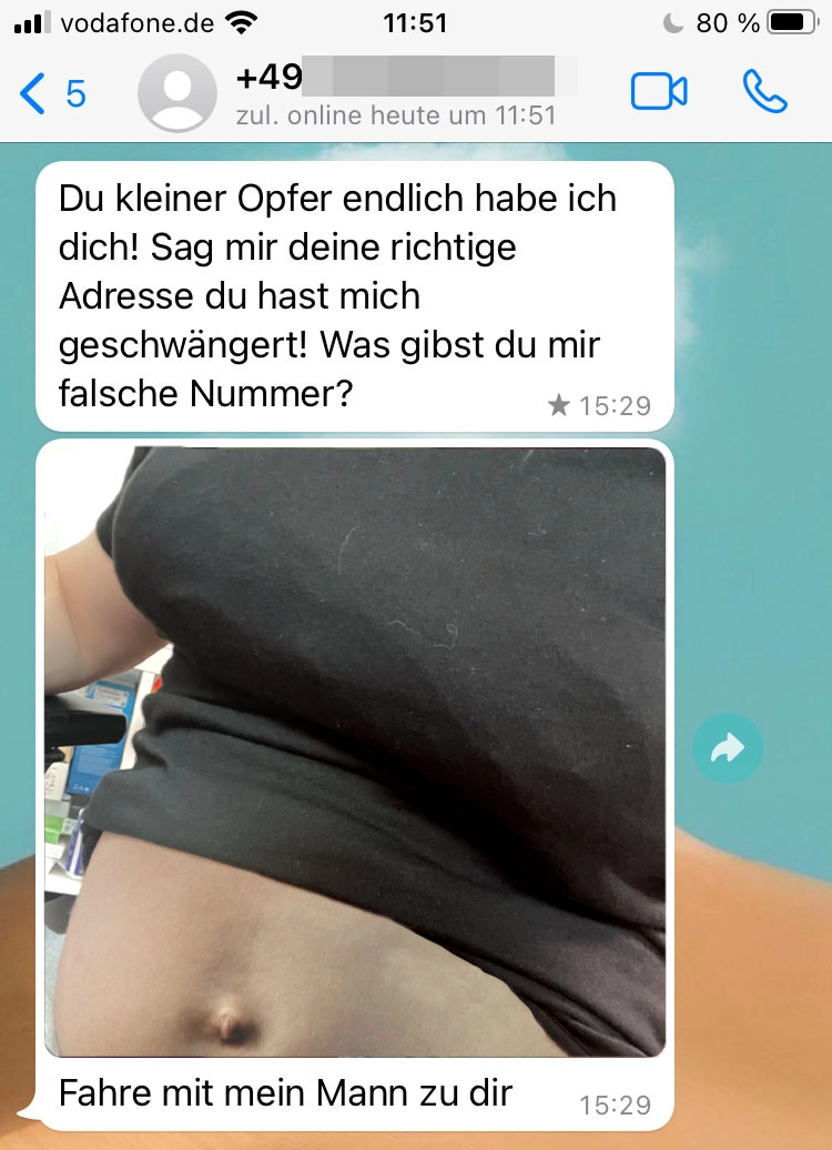 Sie ist richtig sauer Von donscap Veröffentlicht 25.06.2022, 14:54Sie ist richtig sauerUnd sie will sogar mit ihrem Mann vorbeikommen. Das ist gar kein gutes Zeichen und ich würde sie direkt blockieren. Doch so einfach ist das hier leider nicht 😆😆Tags:chatwhatsappschwangerWhatsAppE-MailLink