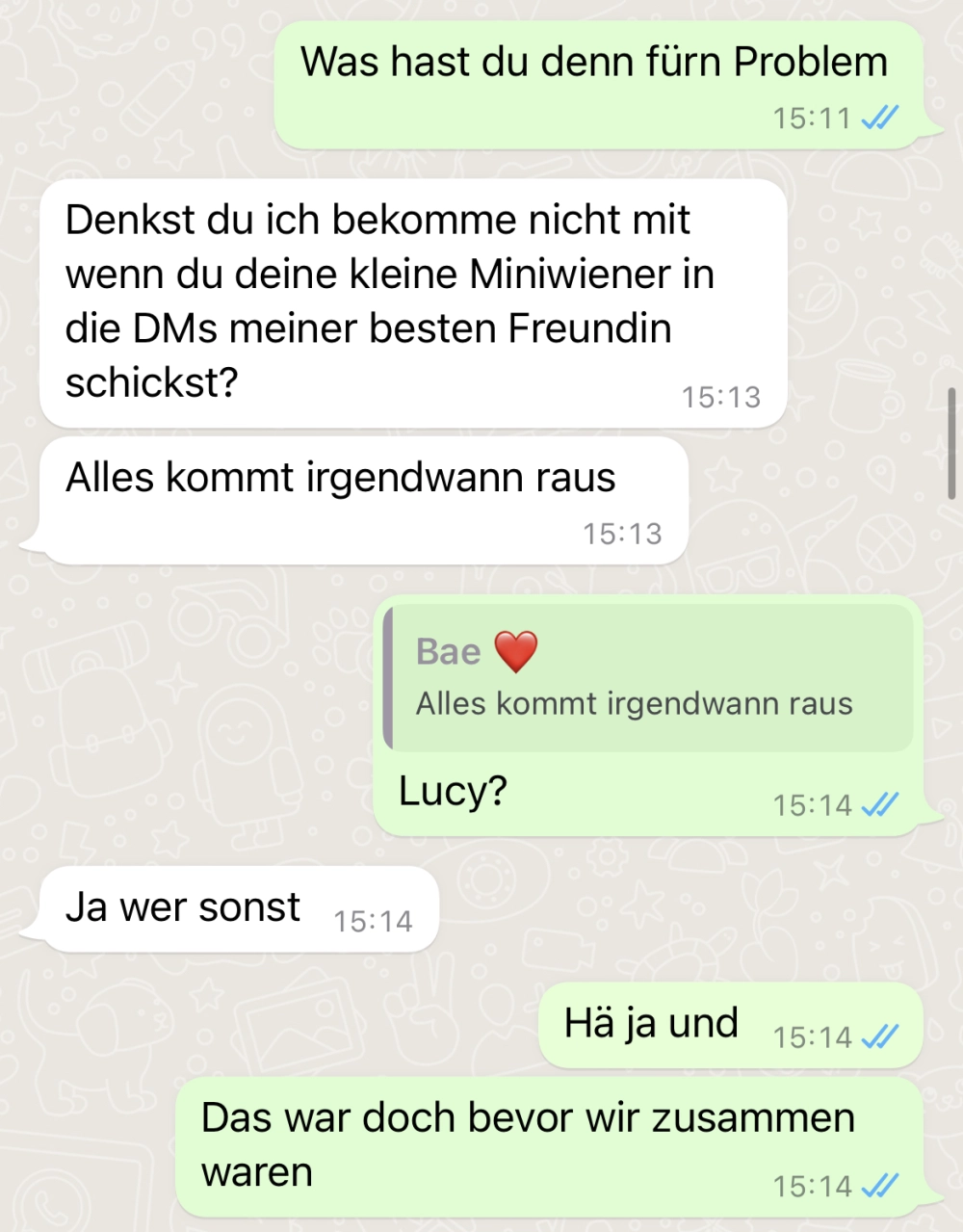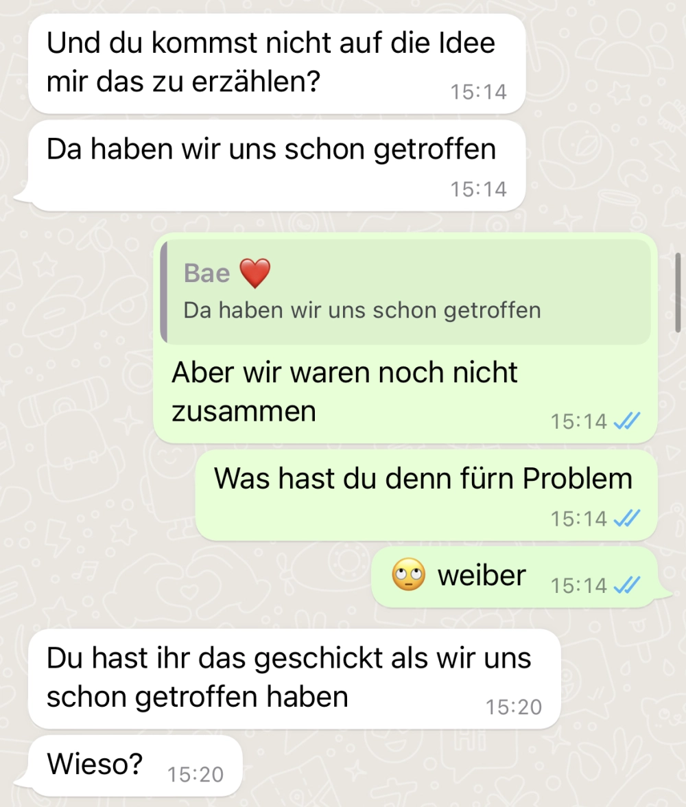 Sie kann ihm das nicht verzeihen Von donscap Veröffentlicht 29.06.2022, 16:35Sie kann ihm das nicht verzeihenPaar von euch können das sicher nachvollziehen, während sich andere fragen, wo eigentlich das Problem liegt. Doch da teilen sich die Geister 😆Tags:zettelchatWhatsAppE-MailLink