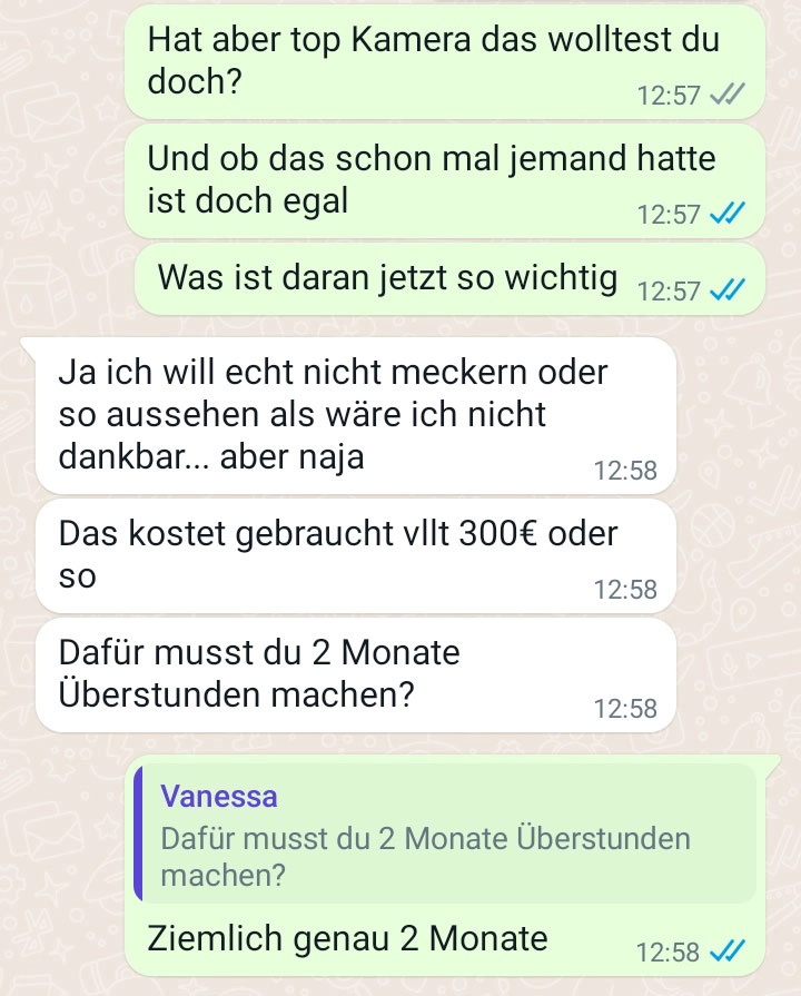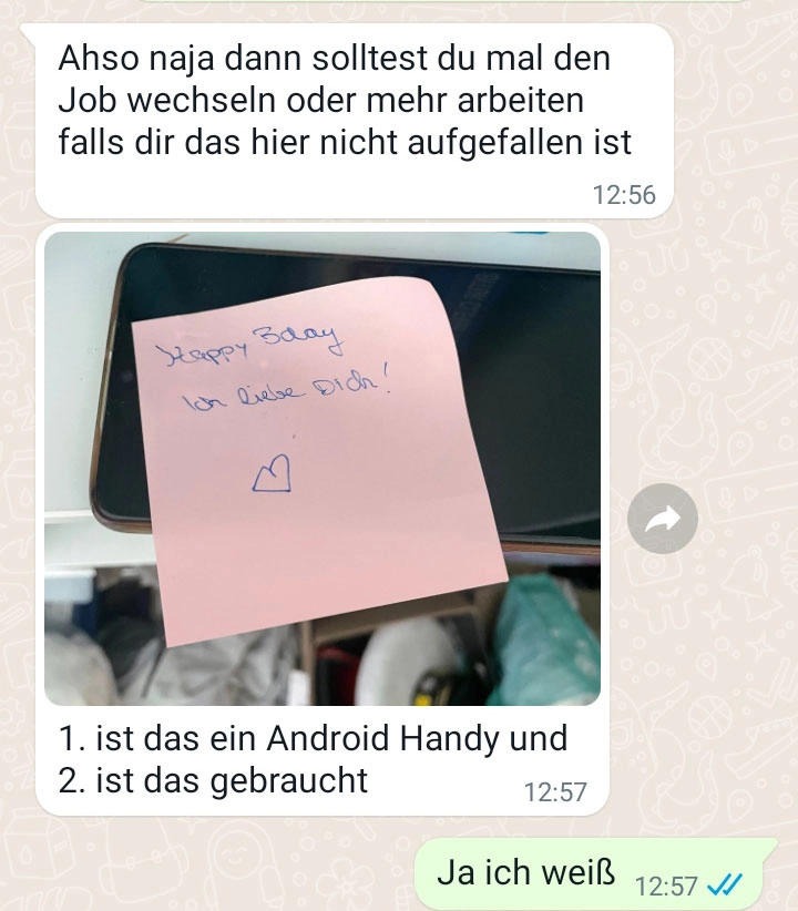 Das Geschenk macht sie gar nicht glücklich Von donscap Veröffentlicht 15.07.2022, 12:09Das Geschenk macht sie gar nicht glücklichDas ist schon ein wenig undankbar. Selbst wenn man sich nicht so freut, kann man ja so tun und freundlich bleiben. Aber das hat direkt alles zerstört.Tags:chatwhatsappWhatsAppE-MailLink