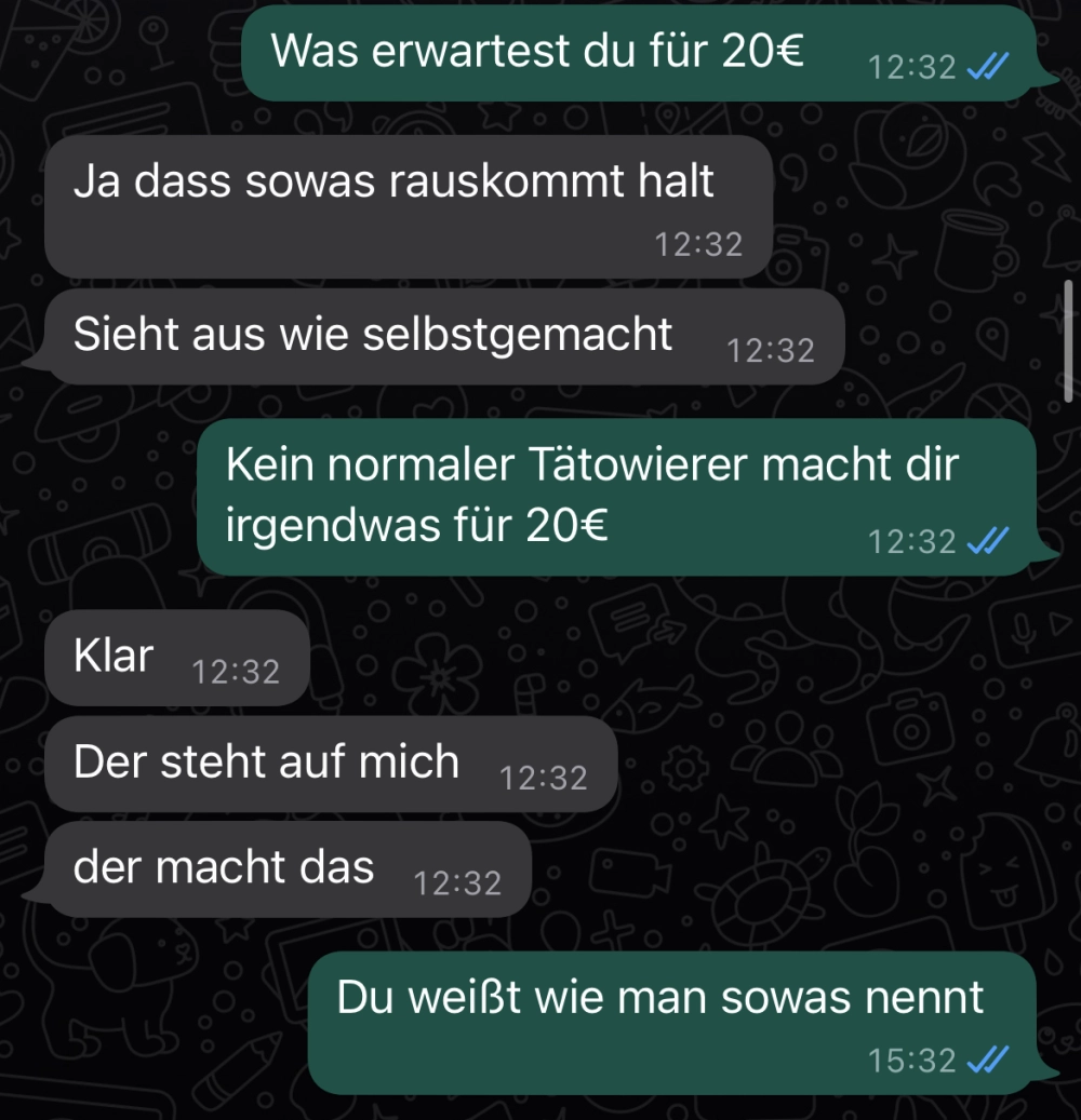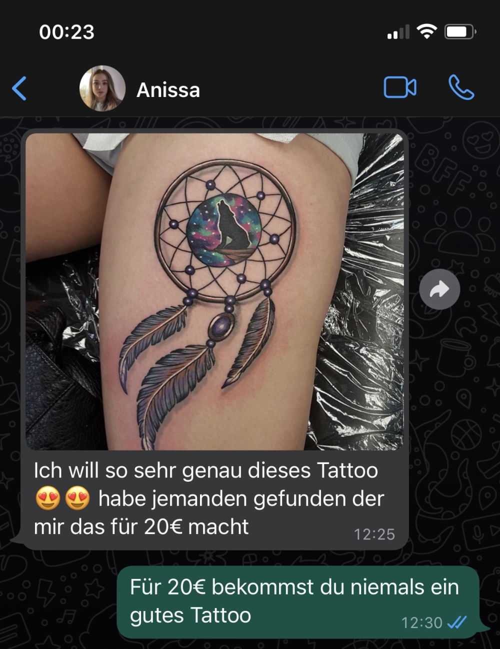 Besonders bei Tattoos sollte man aufpassen, dass sie ordentlich gemacht werden. Wenn man hier an der falschen Stelle knausert, kann man das sein Leben lang bereuen. Sie hat da eine etwas andere Einstellung 😀