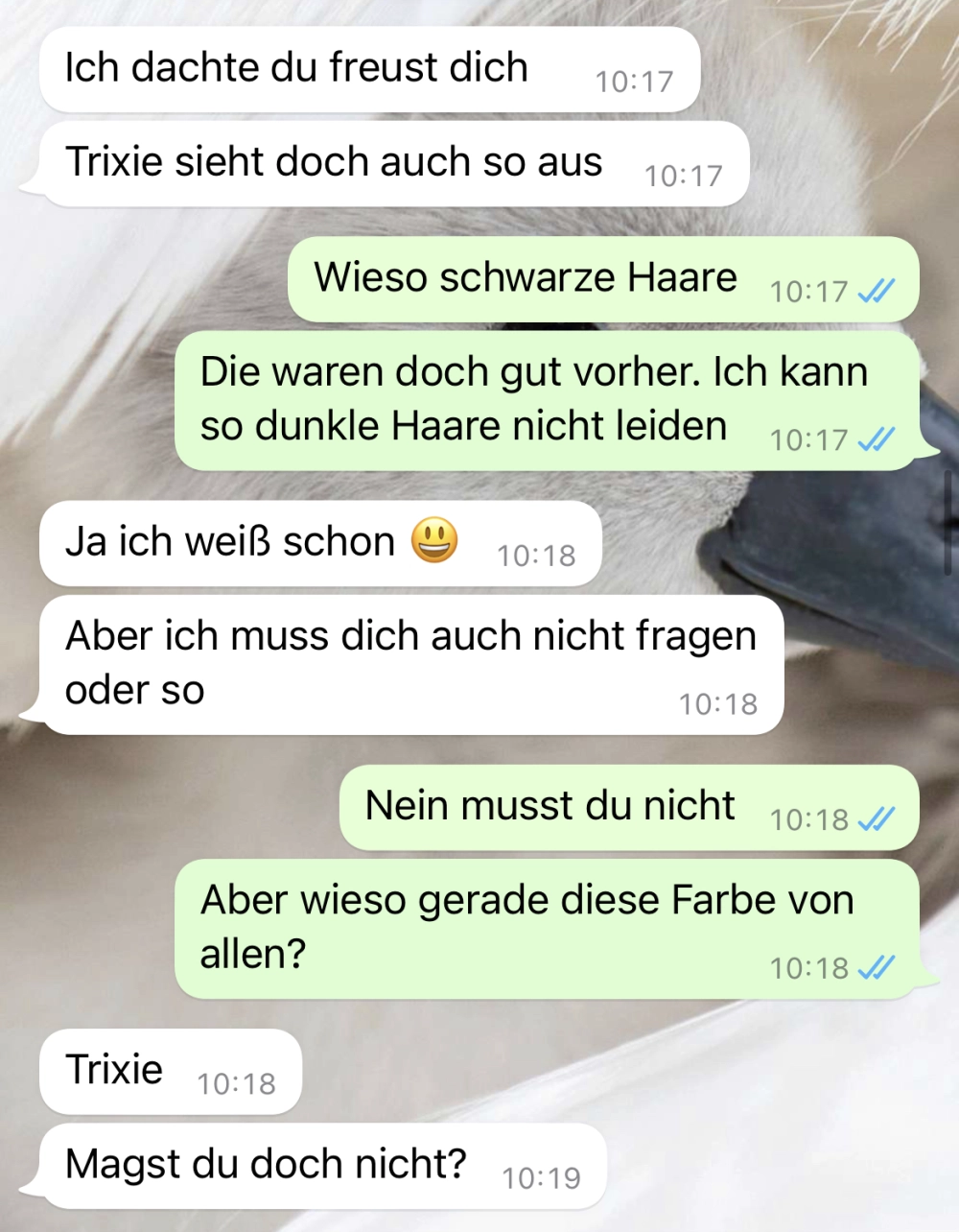 Sie hat es nur gut gemeint Von donscap Veröffentlicht 28.07.2022, 13:47Sie hat es nur gut gemeintDoch die neue Frisur kommt gar nicht gut an. Muss man da in einer Partnerschaft drüber reden, oder kann man machen was man will? Da teilen sich die Meinungen.Tags:chatfrisurWhatsAppE-MailLink