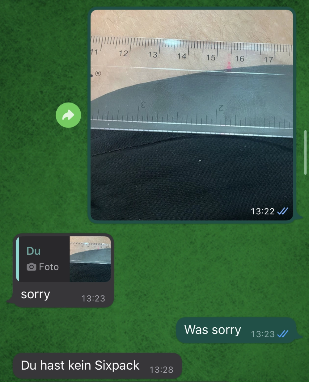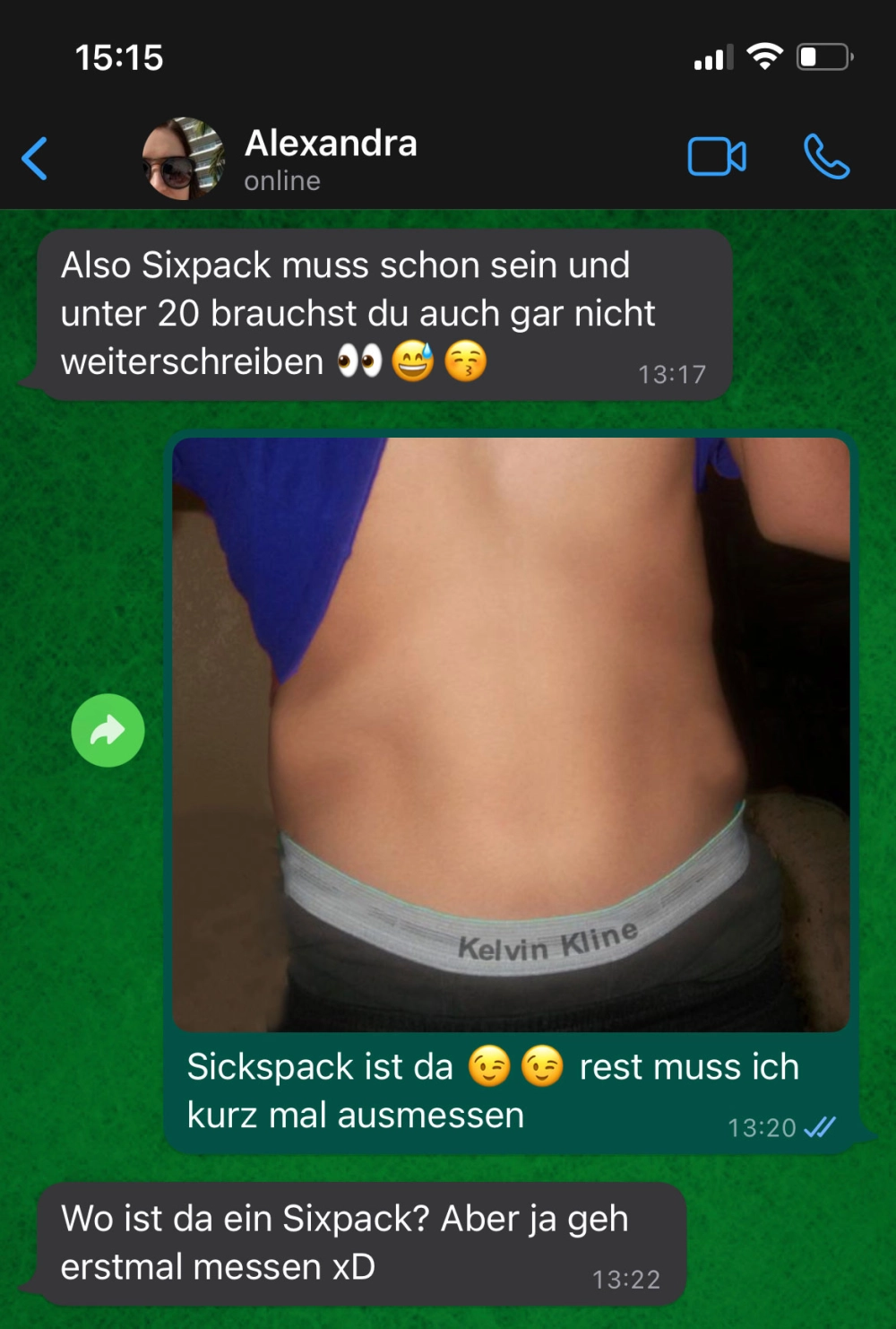 Sixpack ist ihr am wichtigsten Von donscap Veröffentlicht 19.08.2022, 13:33Sixpack ist ihr am wichtigstenAber Oberflächlichkeit zahlt sich am Ende einfach nicht aus. Es kommt immer auf die inneren Werte an.Tags:chatsixpackWhatsAppE-MailLink