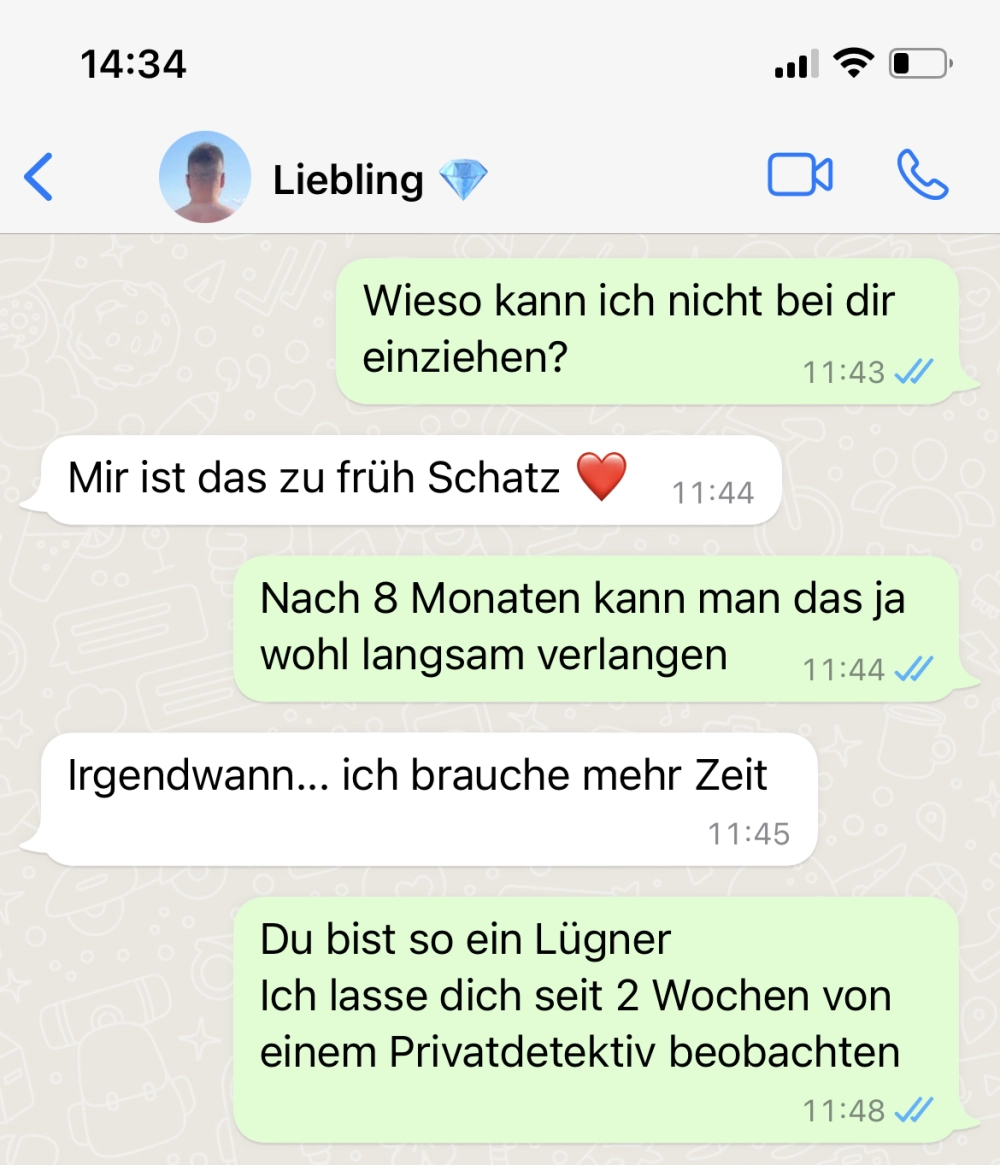 Nach 8 Monaten kann man das ja auch eigentlich so langsam erwarten. Manchmal dauert es etwas länger, aber irgendwann ist der Punkt für die eigene Wohnung erreicht. Doch sie kam mit einem Detektiv hinter sein echtes Leben 😫