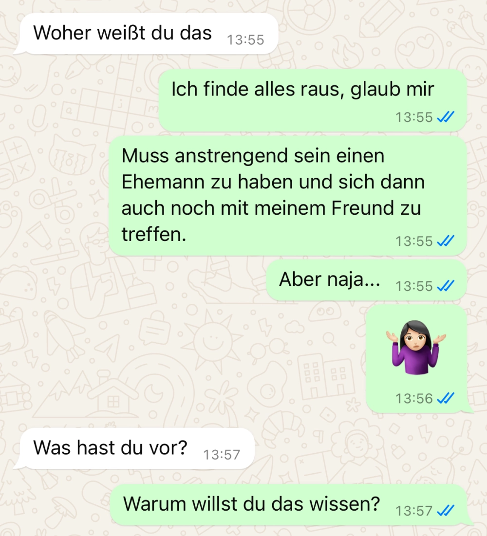 Am Ende gibt sie ihr sogar mehrere Optionen, einfach nur kurz beschäftigen oder es wird Konsequenzen mit Anwalt haben. Doch am Ende kommt alles ganz anders als sie dachte. Man kann einiges eben nicht planen, was will man da machen 🤣 #chat #chatverlauf