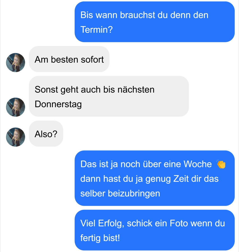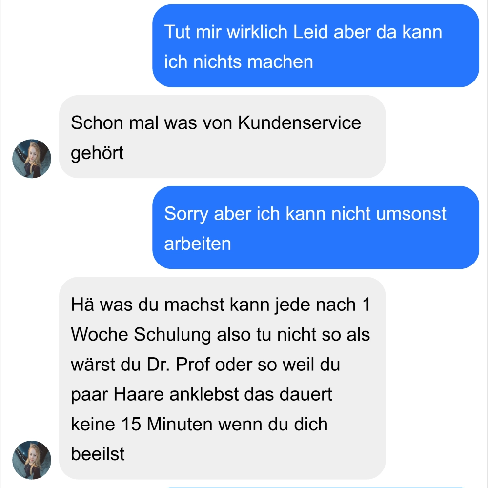 Kunden und Kundinnen können schwierig sein, doch in den Nachrichten der Inhaberin sammelt sich so einiges an unterhaltsamen Konversationen. Als Inhaberin ist es sicher nicht ganz so leicht ruhig zu bleiben 🤣