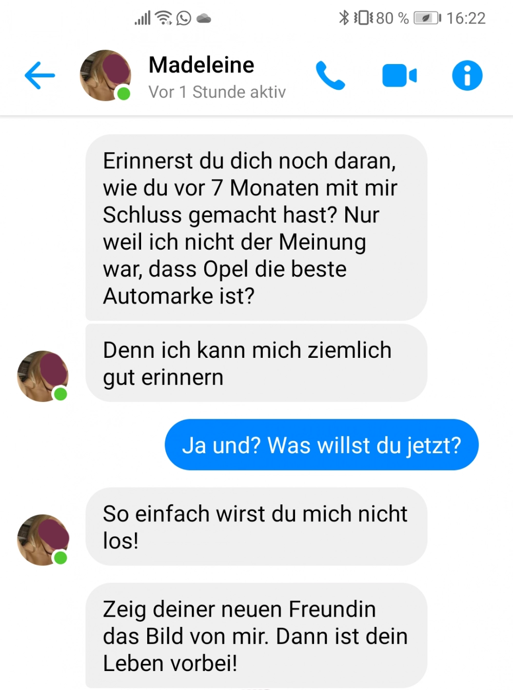 Das Bild wird alles kaputt machen Von donscap Veröffentlicht 04.10.2021, 11:50 Aktualisiert 17.09.2025, 10:57Bei dem Chat verlier ich mal wieder den Glauben an die Liebe 😂😂😂 Ist das normal heutzutage? Und dann noch die Sache mit dem Opel...Tags:chatsmsmessengerfacebookWhatsAppE-MailLink