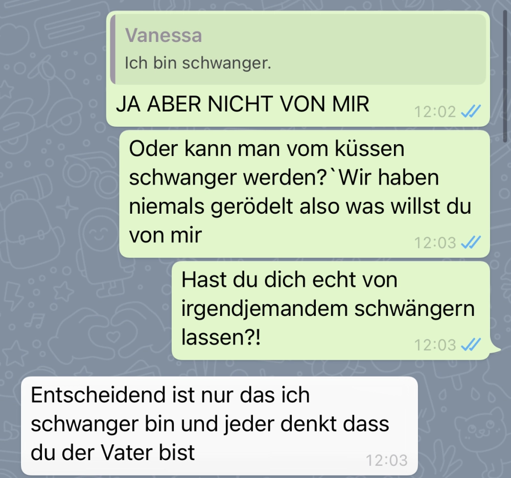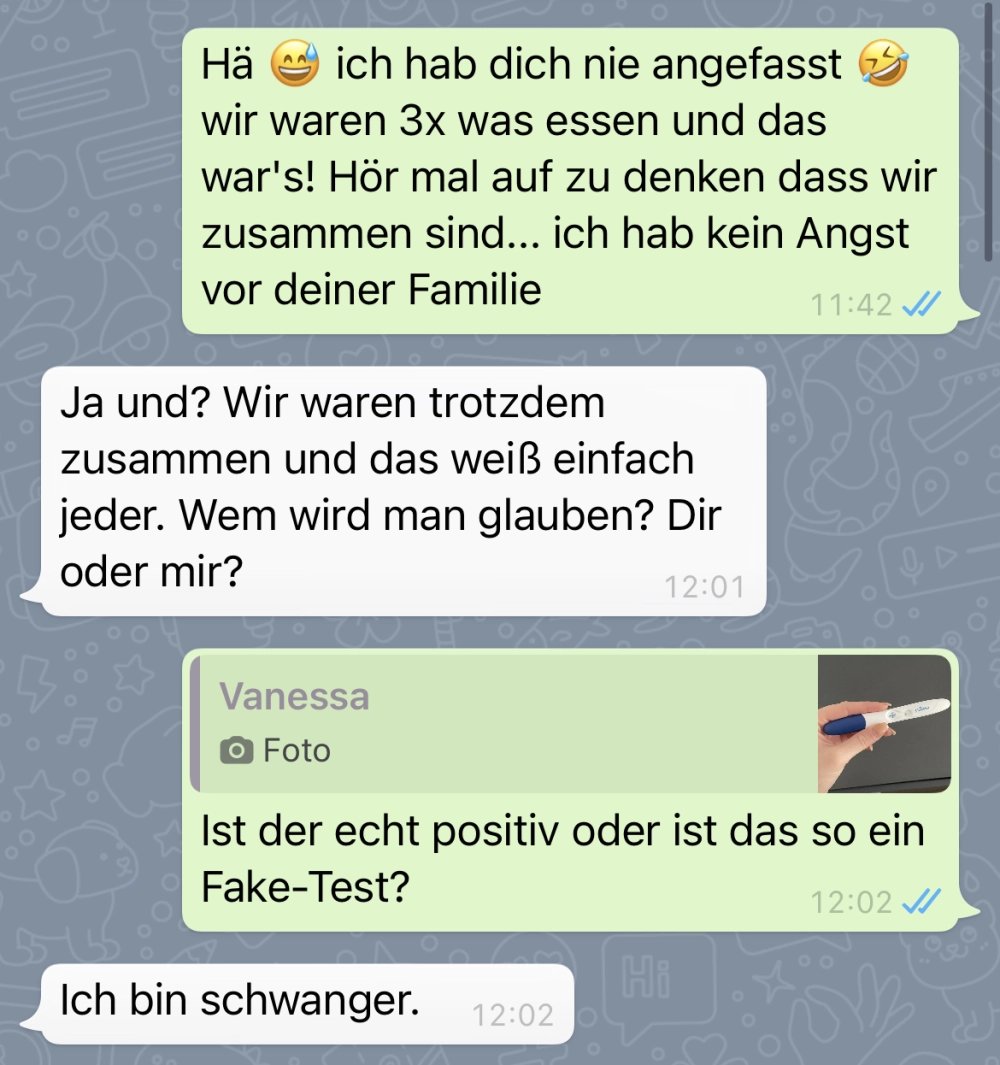 Sie ist einfach schwanger, obwohl die beiden niemals.... ? Okay, solche Menschen machen mir irgendwie Angst! So kann man die Beziehung mit Sicherheit nicht retten.