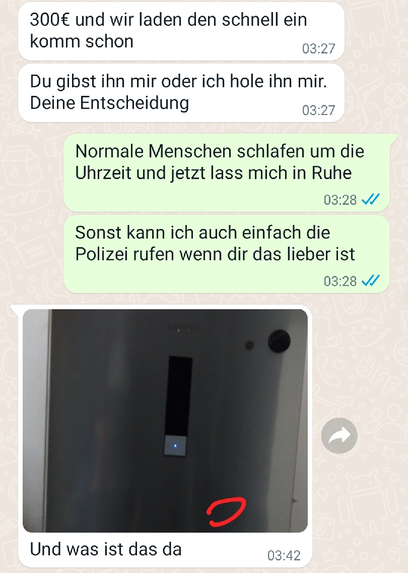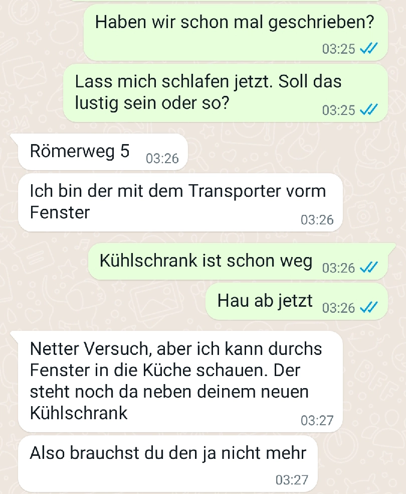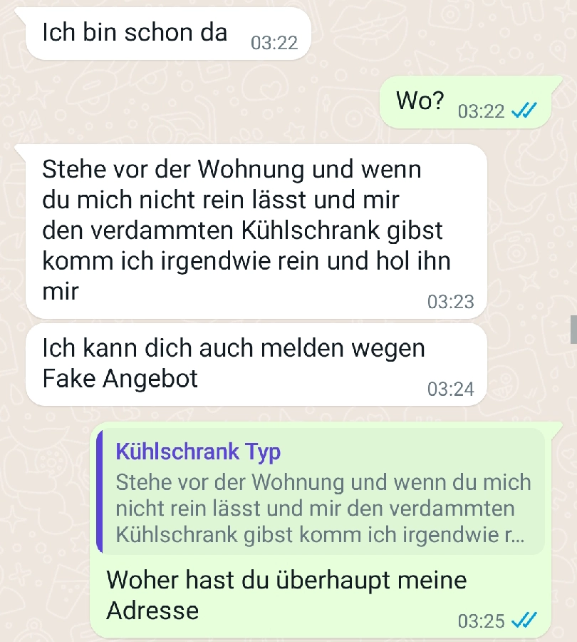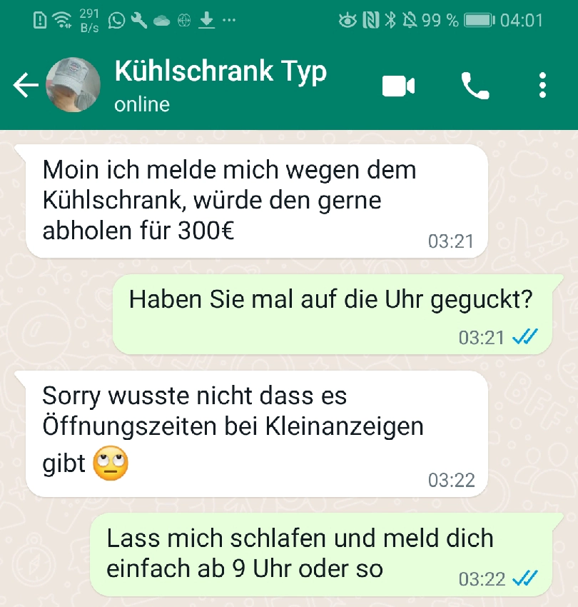 Er scheint diesen Kühlschrank wirklich dringend zu brauchen. Jedenfalls macht er ihn die ganze Nacht zur Hölle wegen dieser Anzeige. Falls das mal einer bei euch versucht wisst ihr jetzt bescheid!
