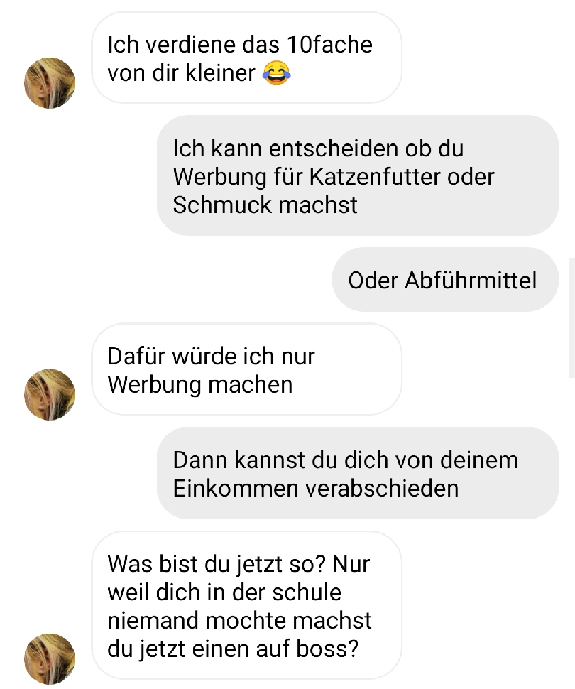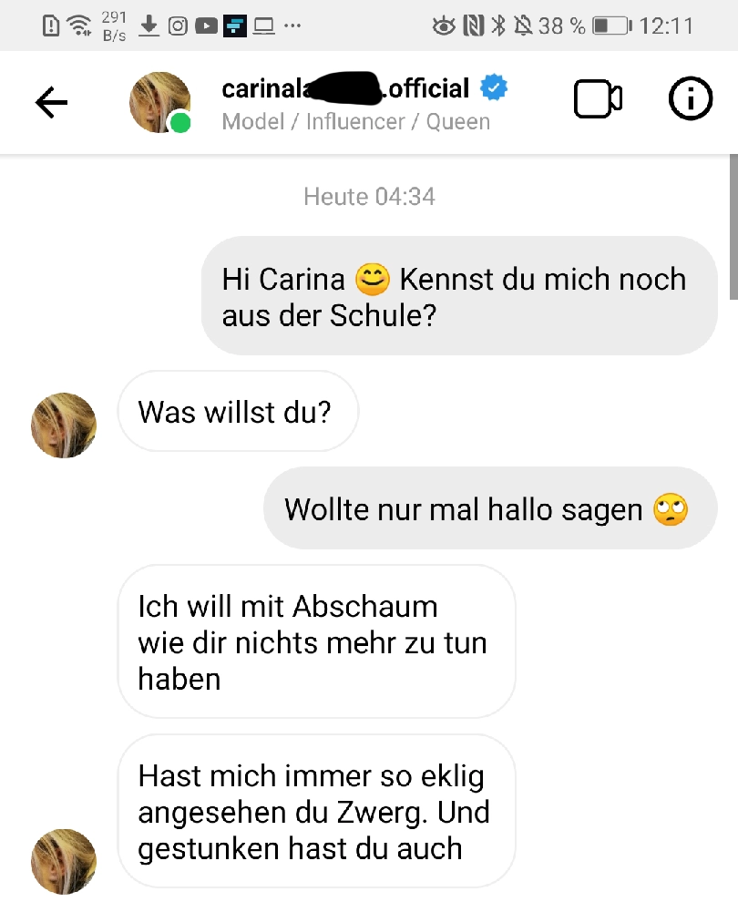 Er kennt sie noch aus der Schule und offenbar ist sie mittlerweile Influencerin, Model und hat das zu ihrem Beruf gemacht. Doch Karma sorgt wohl dafür, dass sie die Konsequenzen ihrer Schulzeit jetzt tragen muss.