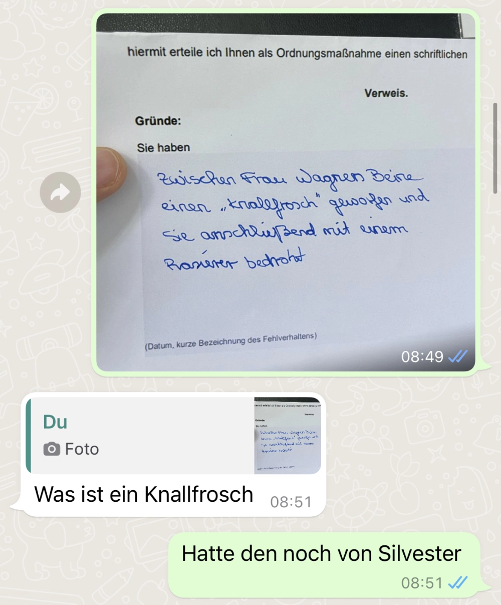 Wer so eine Lehrerin hat, der braucht wohl keine Feinde mehr.