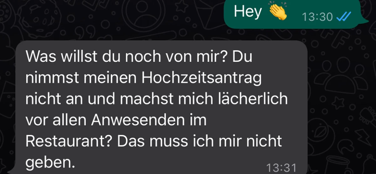 Der Hochzeitsantrag kam nicht gut an