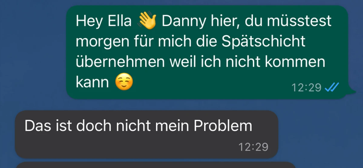 Sie hat echt nie Nase voll von ihren Spätschicht